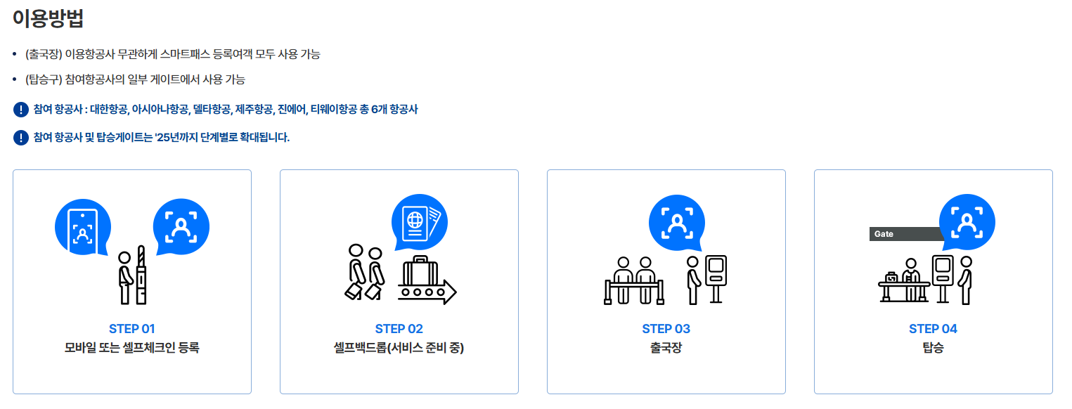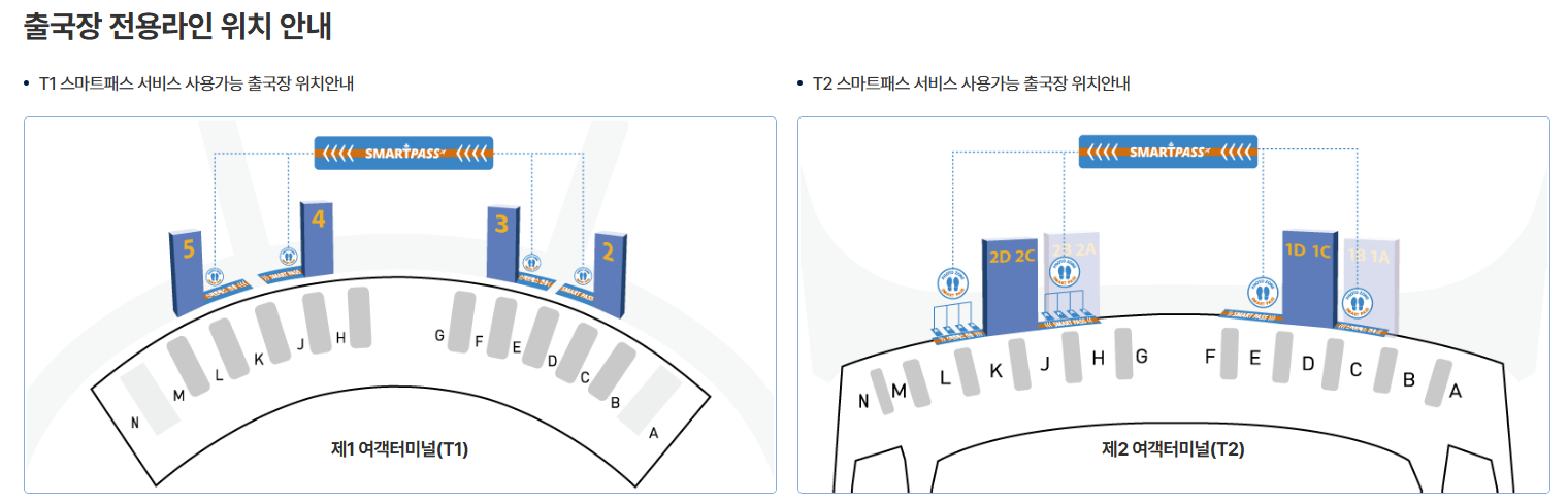 스마트패스는 터미널 내 전용 출국 통로에서 이용 가능합니다.