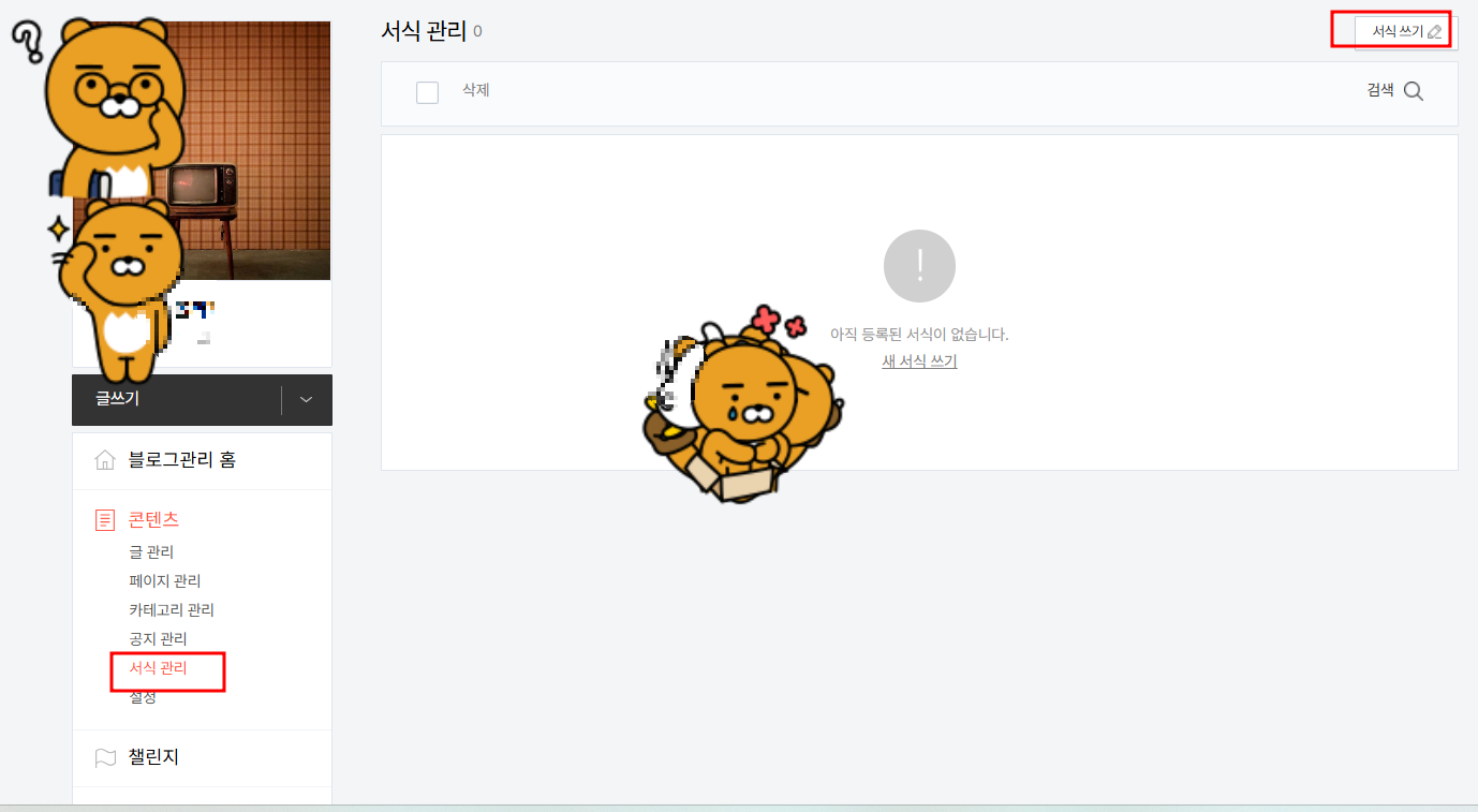 지워준 코드를 입력하고 적용을 누르면 css 코드 변경까지 완료했습니다. 이제 서식 만들어서 적용하면 드디어 공짜로 버튼 만들기 성공입니다!! 블로그 초보는 한번도 이용해본 적 없는 서식 만들기로 넘어가보겠습니다.