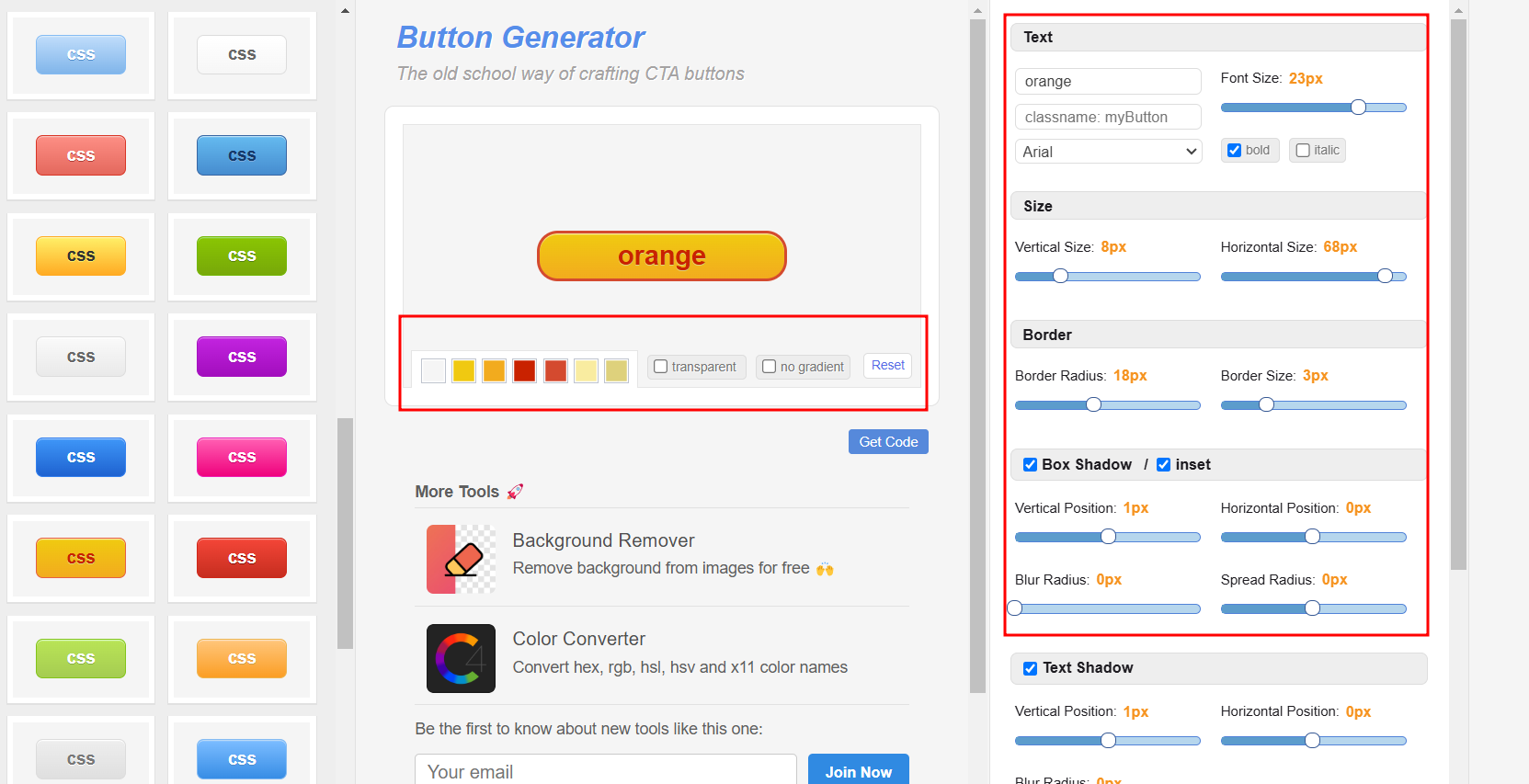 위 사이트에 들어가면 이렇게 이미지가 바로 나옵니다. 내가 원하는 버튼을 만드는 곳인데요,