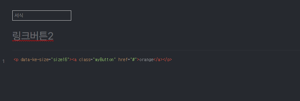 관리 > 콘텐츠 > 서식 관리에서 서식 쓰기를 클릭해줍니다. 서식에다가 방금 만든 걸 저장해뒀다가 필요할 떄마다 꺼내서 쓰는 방식입니다. 서식쓰기를 누르면 글쓰기 모드를 html로 변경해서 처음에 지워줬던 html 코드를 넣어줍니다. 아마 my button 이 들어간 코드 한 줄이 만들어졌을 겁니다. 저렇게 만들어주고 저장해주면 서식이 등록된 겁니다. 이때까지만 해도 뭐야 이게? 싶지만 이제 글써보면서 잘 되었는지 확인하는 단계만 남았습니다.