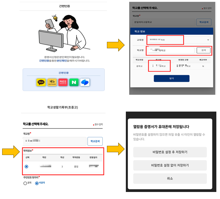 생활기록부를 조회할 때 몇 가지 유의사항이 있습니다. 먼저, 본인 인증이 필요하므로, 인증 수단을 미리 준비해두는 것이 좋습니다. 또한, 학교에 따라 조회 가능한 정보가 다를 수 있으니, 이 점도 참고하시기 바랍니다. 특히 개명하신 분들은 전산으로 조회가 자동으로 안되기 때문에 미리미리 해보시고 안된다면, 모교에 개명으로 인한 정정신청서를 제출하셔야만 생활기록부 전산 조회가 가능하니까 한번씩 봐두시는 걸 추천드립니다.